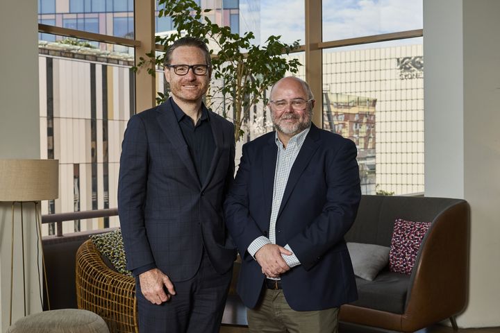 Managing Director Phil Britt and Chief Technology Officer John Reisinger ringing the bell to celebrate Aussie Broadband's debut on the ASX.